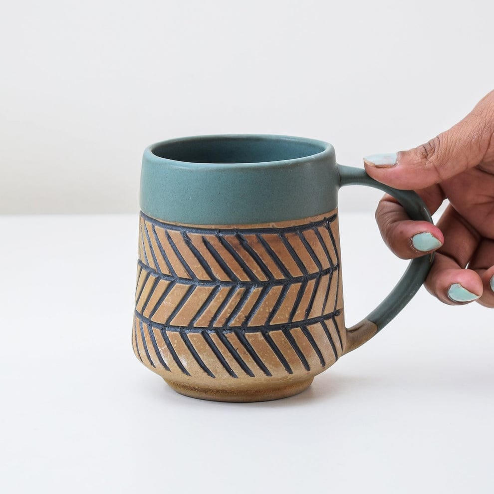 5. Find the perfect blend of style and functionality with the Abiya Ceramic Green Cutting Coral Mug from Khurja Ceramics. Wholesale options available!