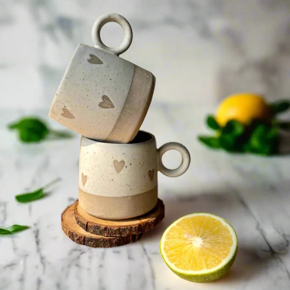 5. Experience the artistry of Khurja ceramics with Abiya's white matt glazed heart mugs. Ideal for home or gifting, explore our collection today!
