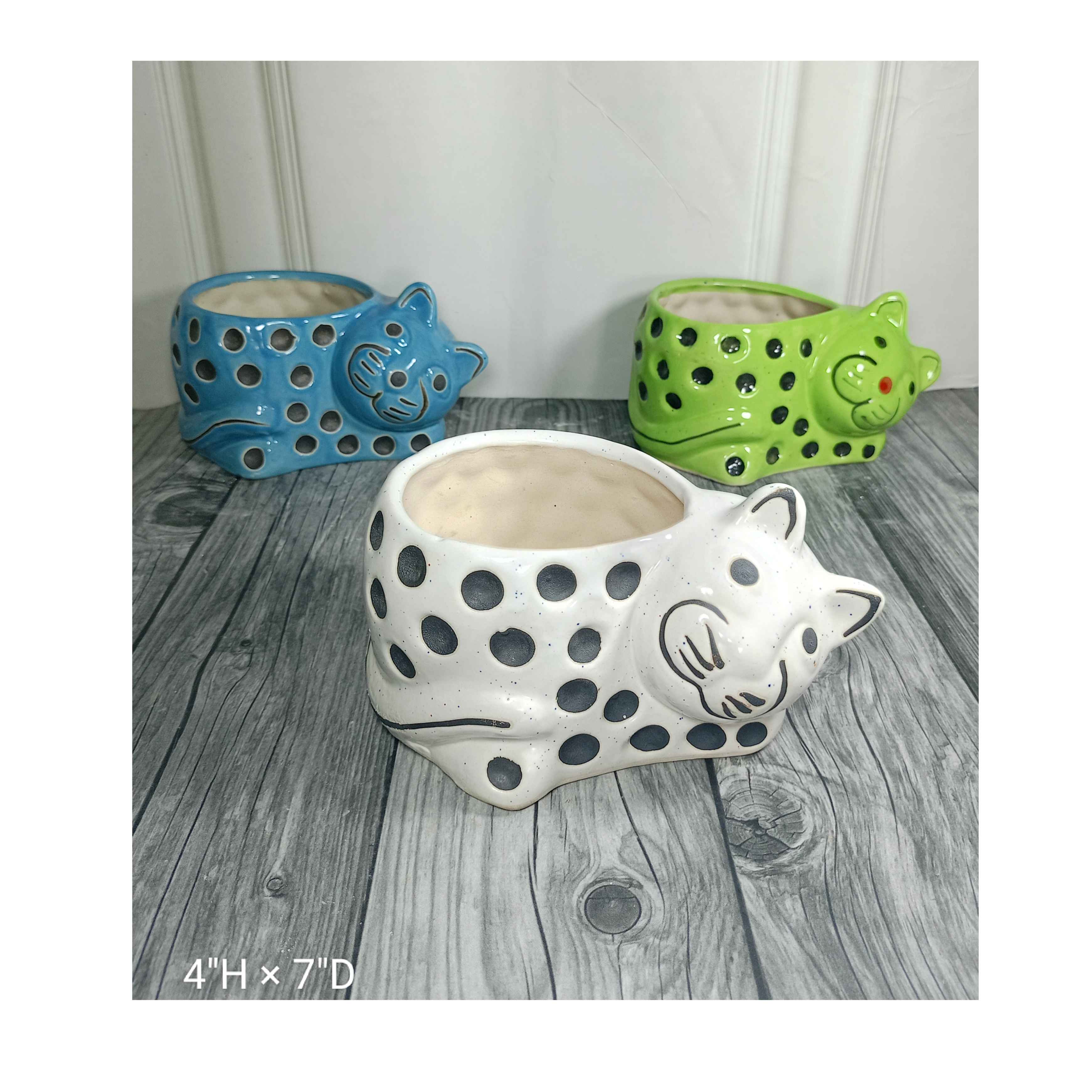 4. Enhance your decor with Abiya Ceramics' stunning ceramic products, like the Dotted Sleeping Cat Shape Pot. Quality craftsmanship awaits you!