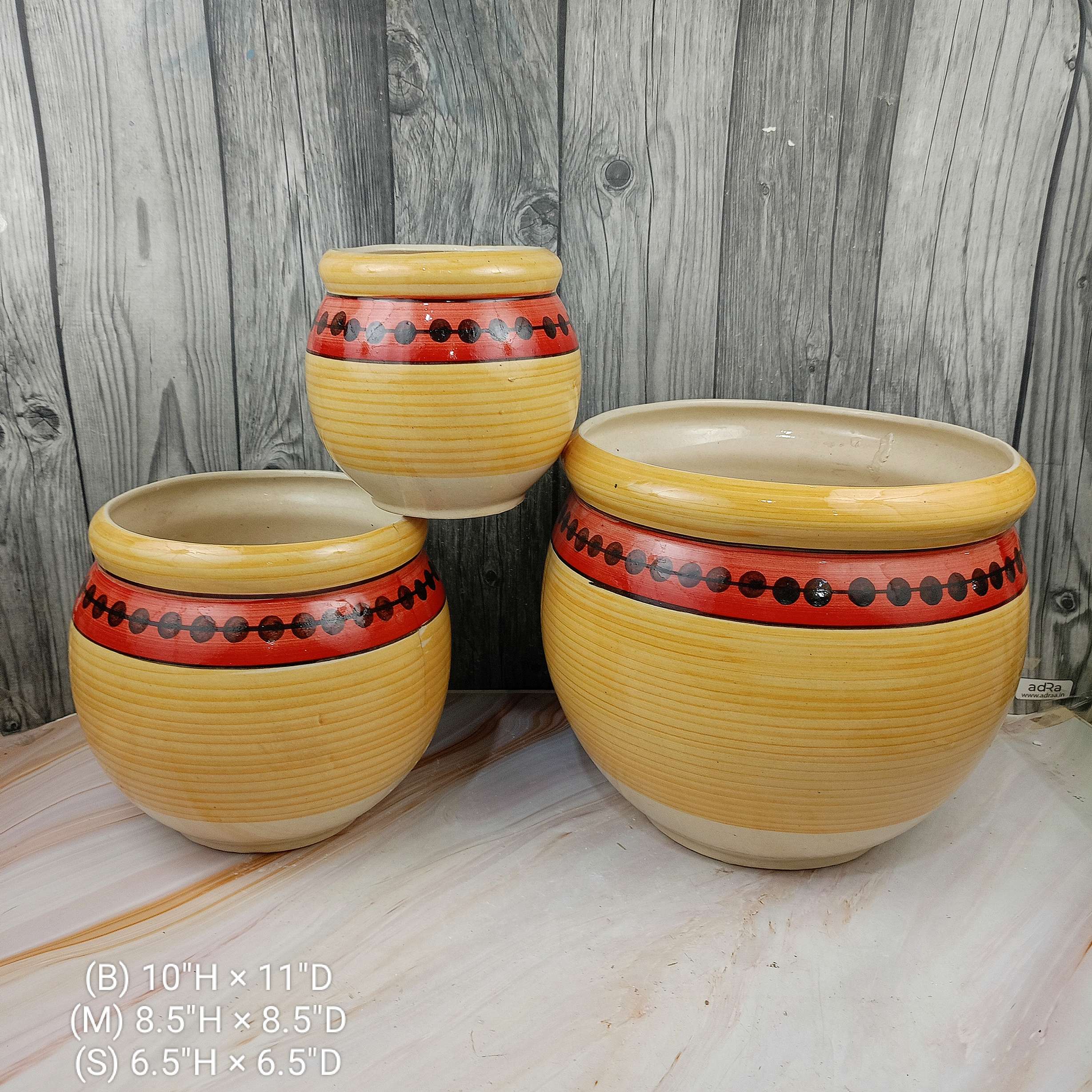 4. Abiya Ceramics offers top-quality wholesale ceramic pots and planters! Explore our delightful Yellow Painting Ganda 3 Piece Set for your nursery decor.