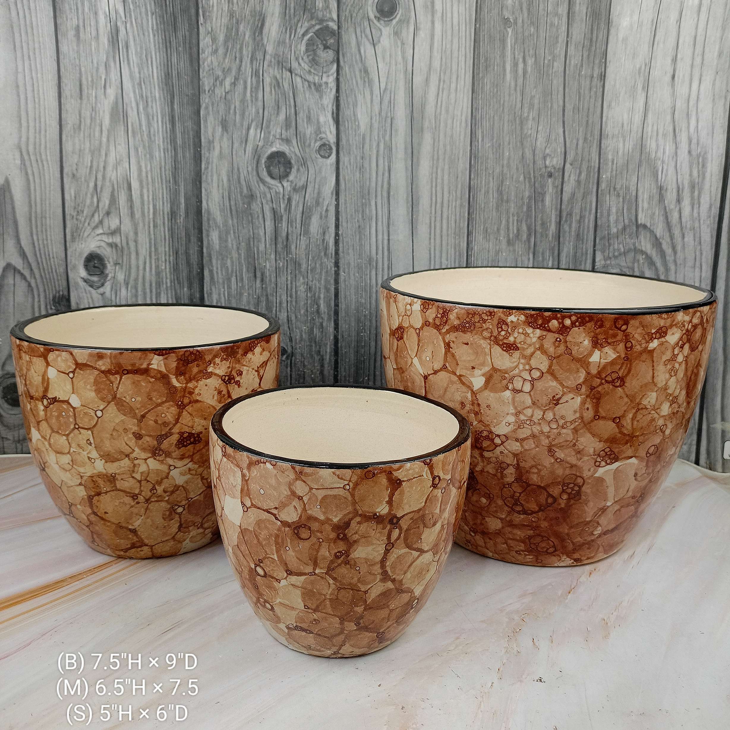 1. Discover the beauty of Abiya Ceramics' Bubble Anda Pot 3 Piece Set. Perfect for your plants, these handcrafted planters add charm to any space.
