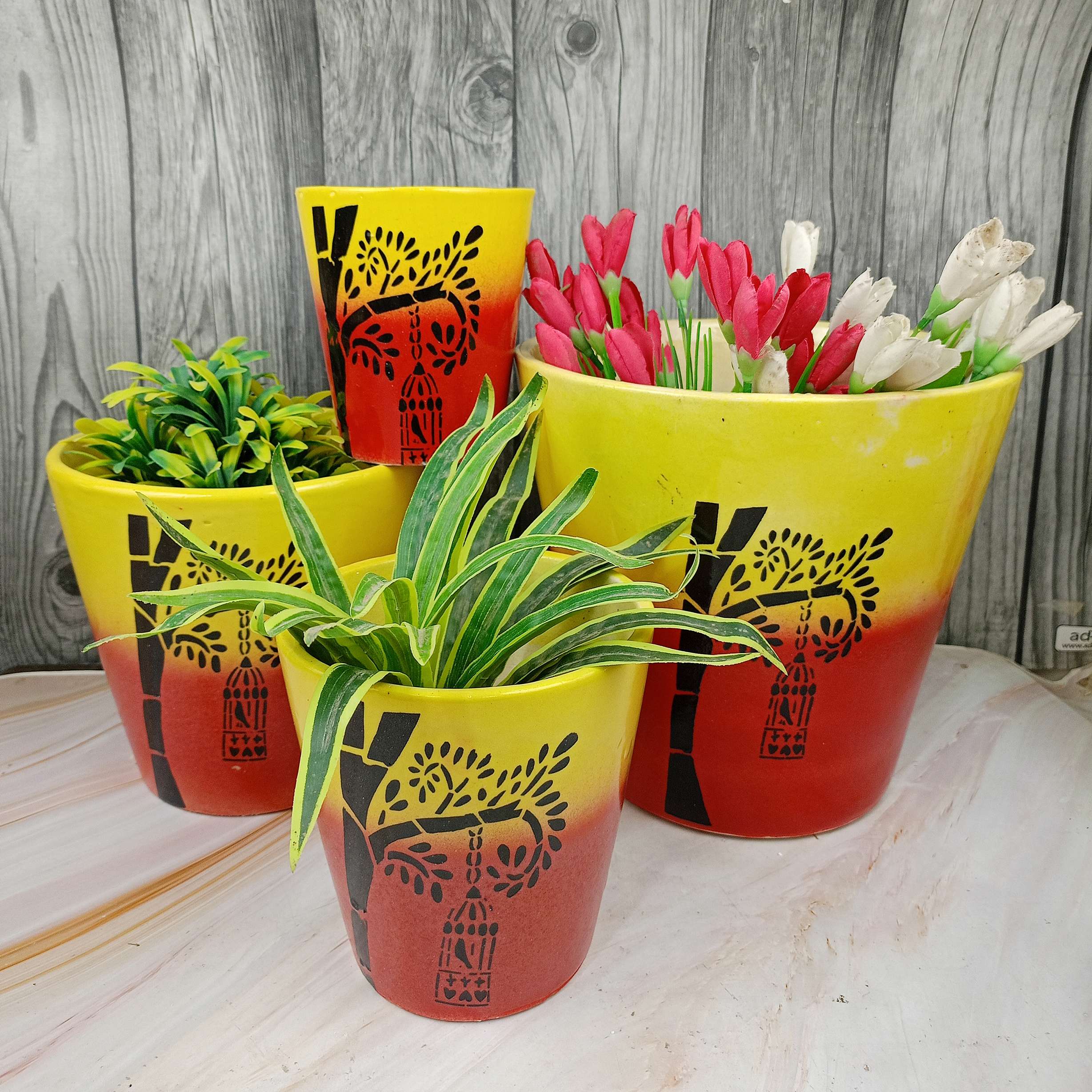 1. Discover exquisite Abiya Ceramics pot planters, handcrafted in Khurja. Elevate your space with our vibrant 4-piece spray-painted Balti pot set today!
