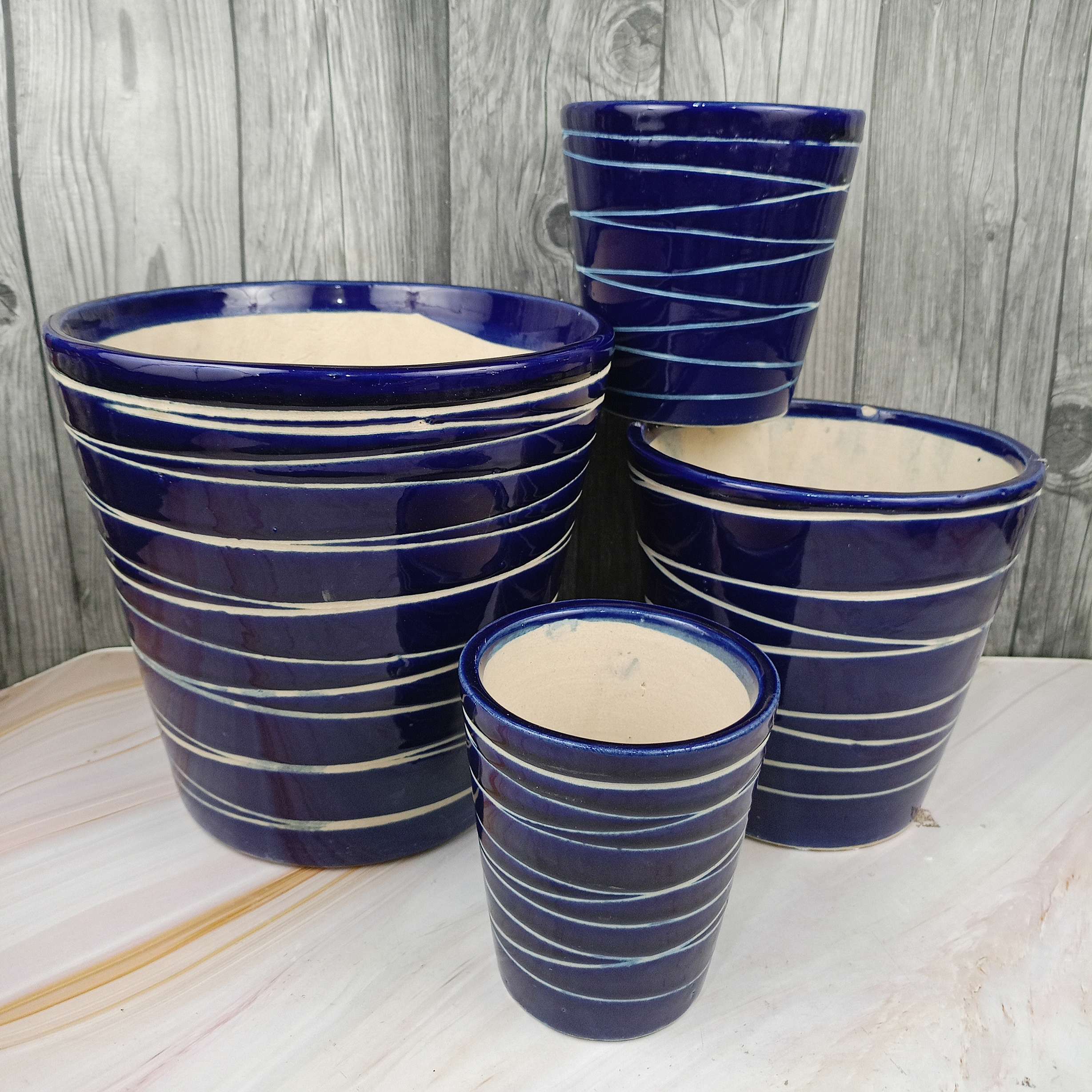 1. Discover the beauty of Abiya Ceramics' Embossed Stripe Balti Pot 4 Piece Set. Perfect for adding charm to your plants and enhancing your home decor.