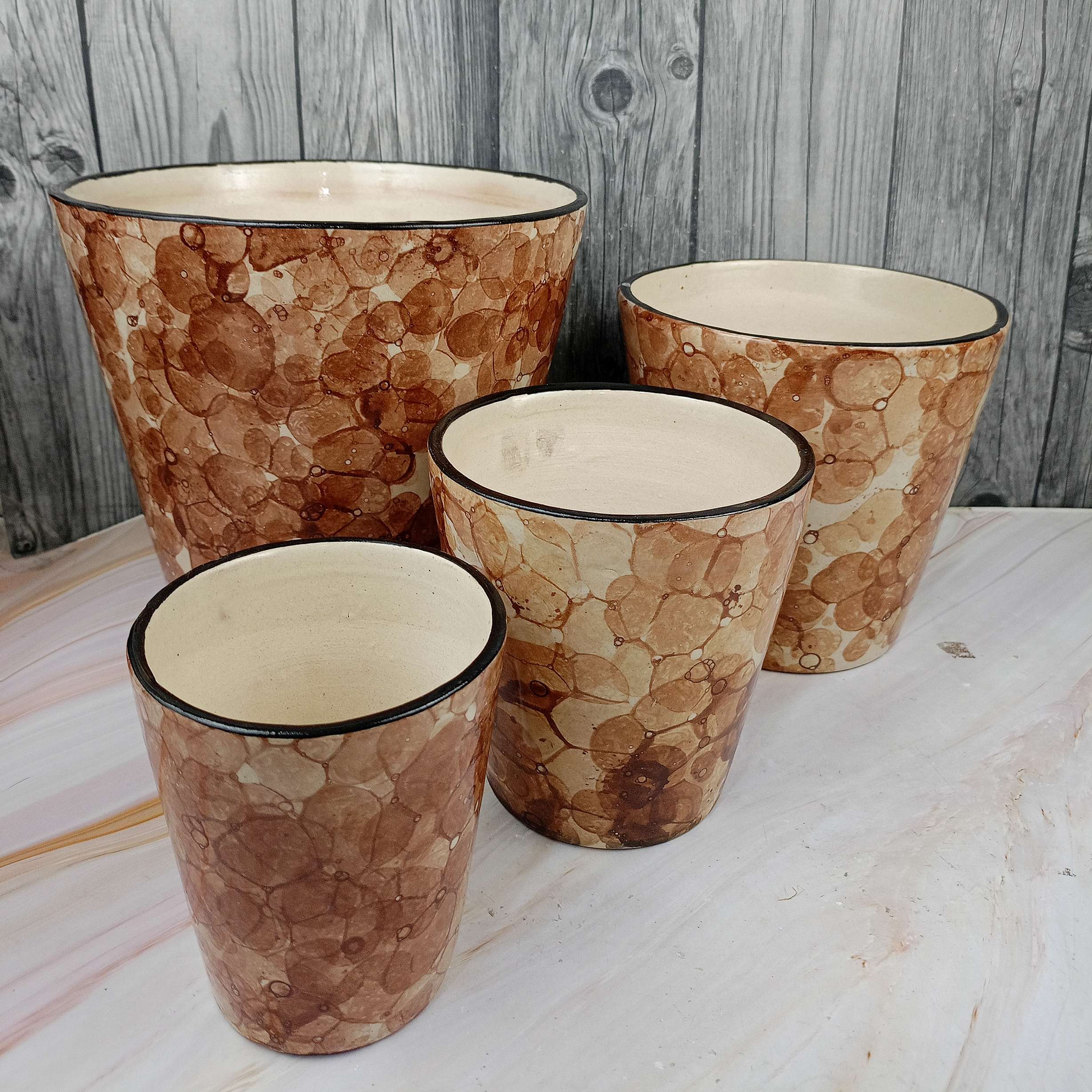 2. Explore the Brown Bubble Shade Balti Pot 4 Piece Set from Abiya Ceramics. Ideal for wholesalers looking for stylish and durable ceramic planters.