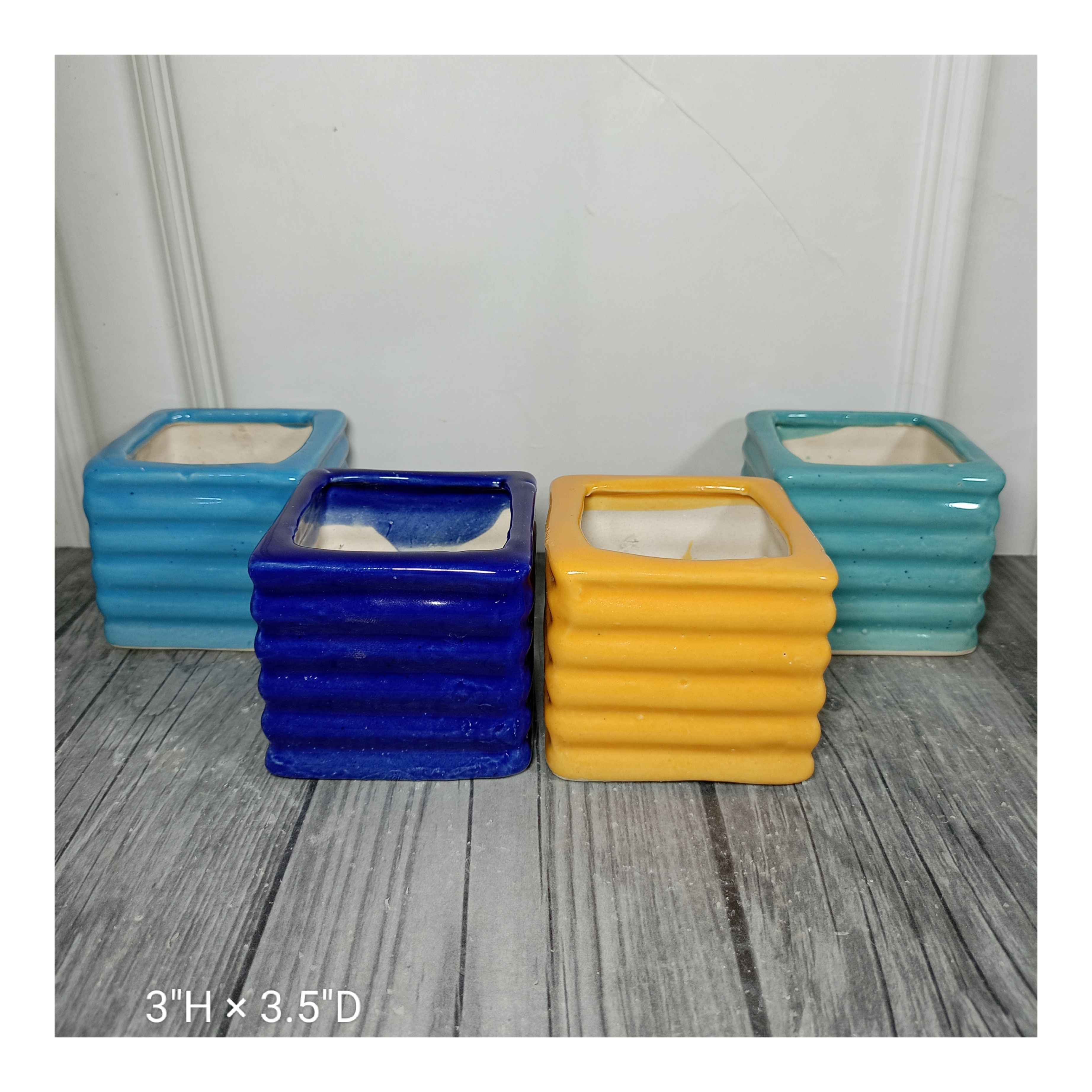 1. Transform your living space with the vibrant charm of our four colorful ceramic planters, expertly crafted by Abiya Ceramic, a leading wholesale Khurja ceramic pot manufacturer. Each planter showcases a unique design, featuring a delightful array of colors that will brighten any room. The square lining adds a modern touch, making these planters not just functional but also a stunning decorative element for your home or office. Whether you’re looking to showcase your favorite plants or simply add a splash of color to your decor, these planters are the perfect choice.