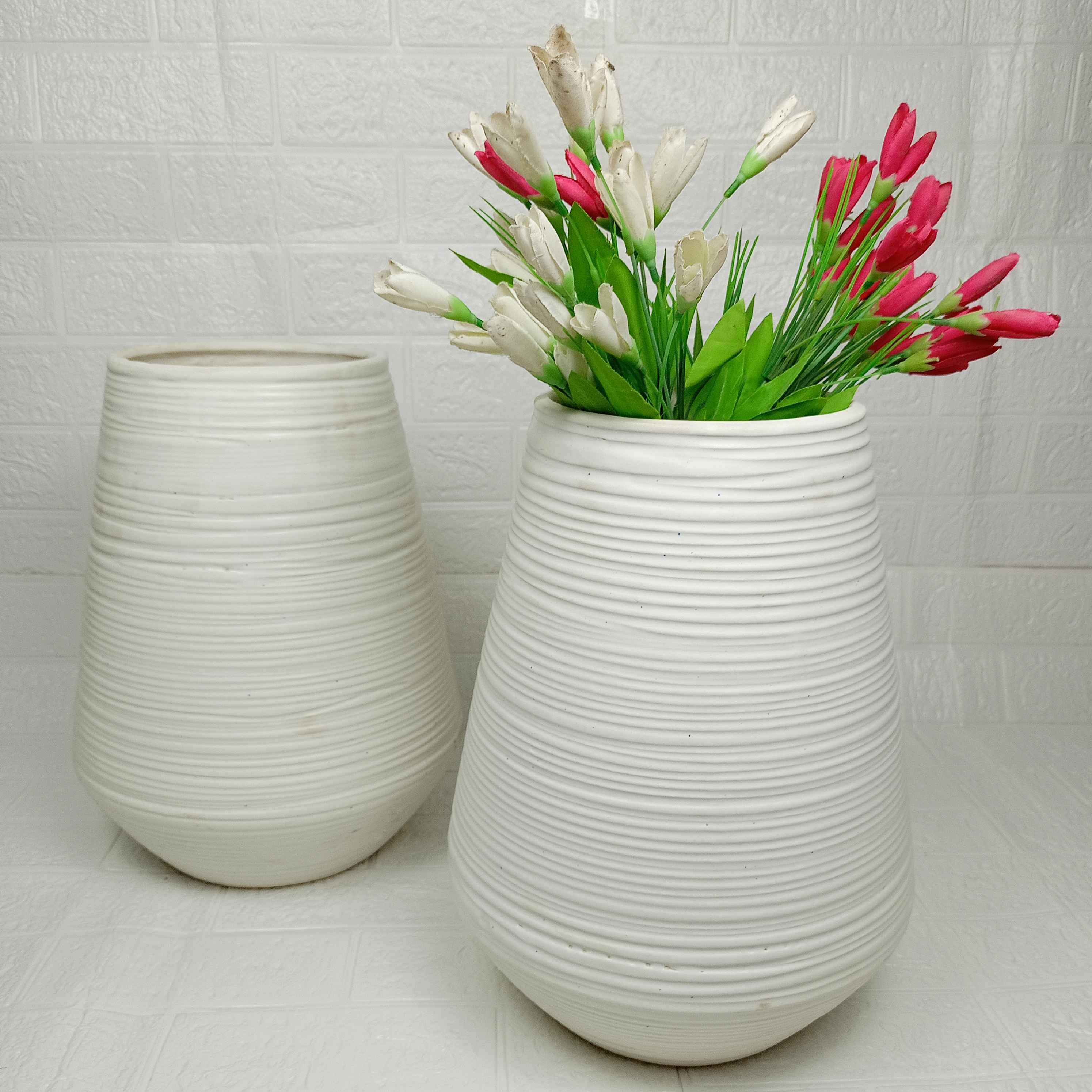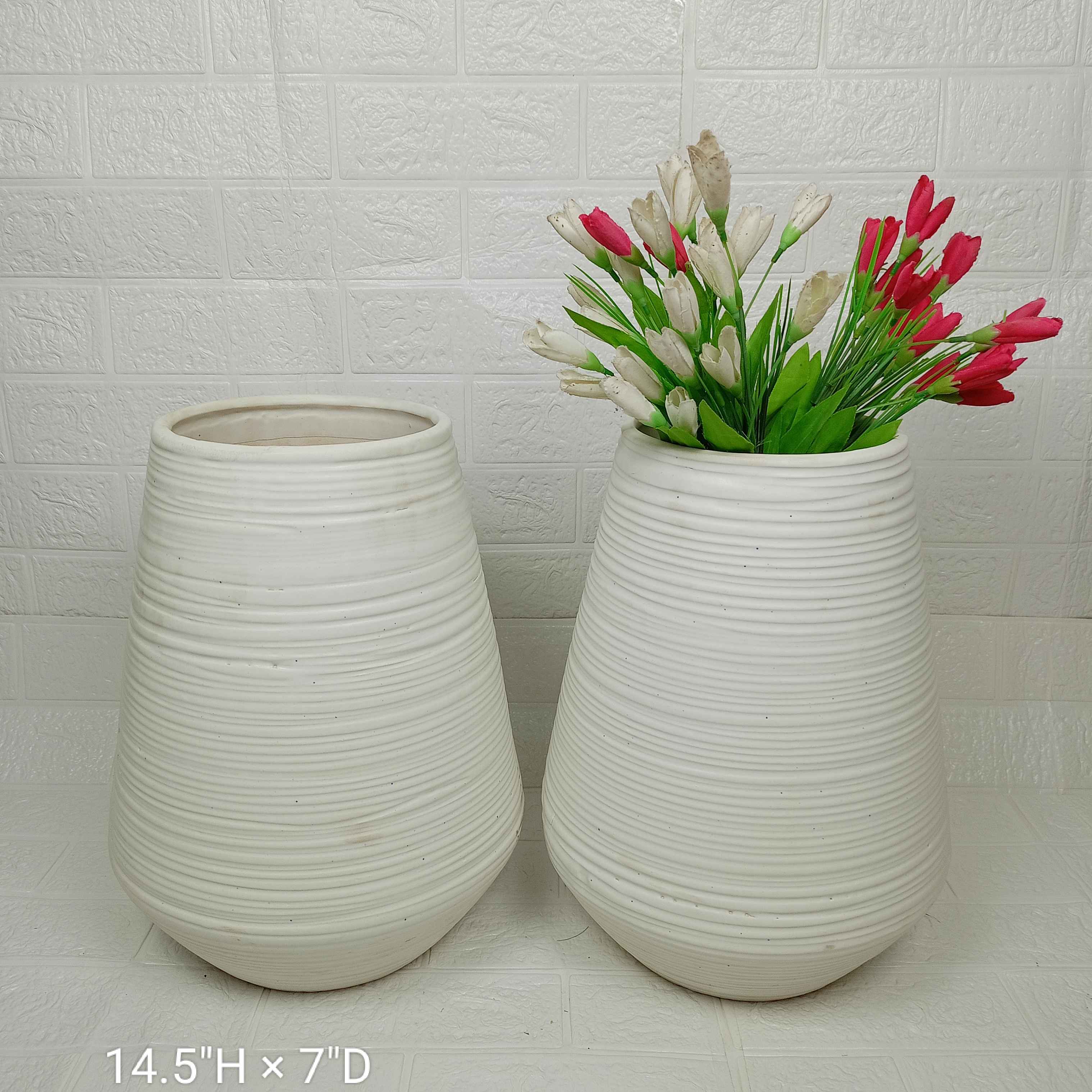 1. Discover the elegance of ABIYA CERAMICS Khurja with our XL White Ring Cylindrical Pot. Perfect for any decor, elevate your space today!