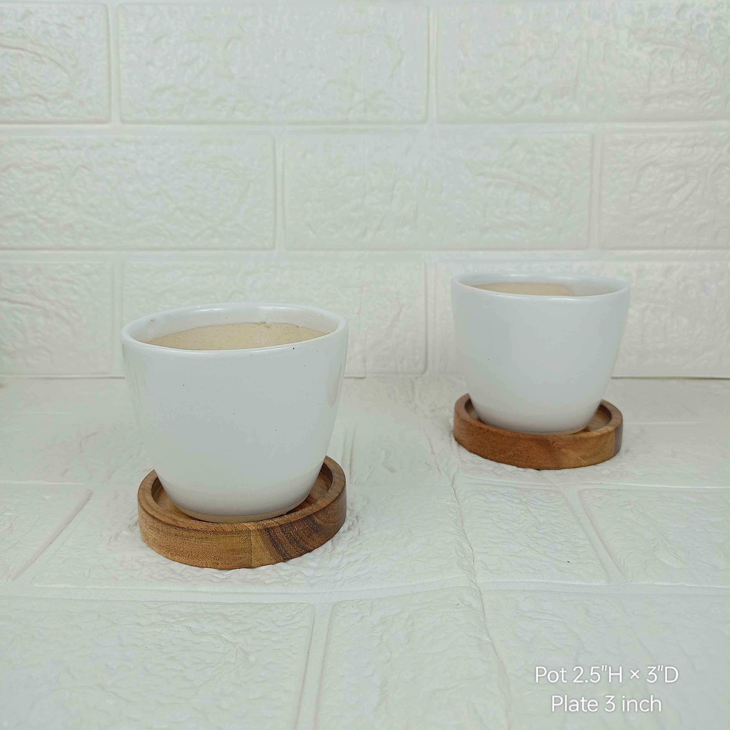 5. Explore the White Mini Egg Corporate Pot with Wooden Plate, a perfect blend of style and practicality for your professional environment.