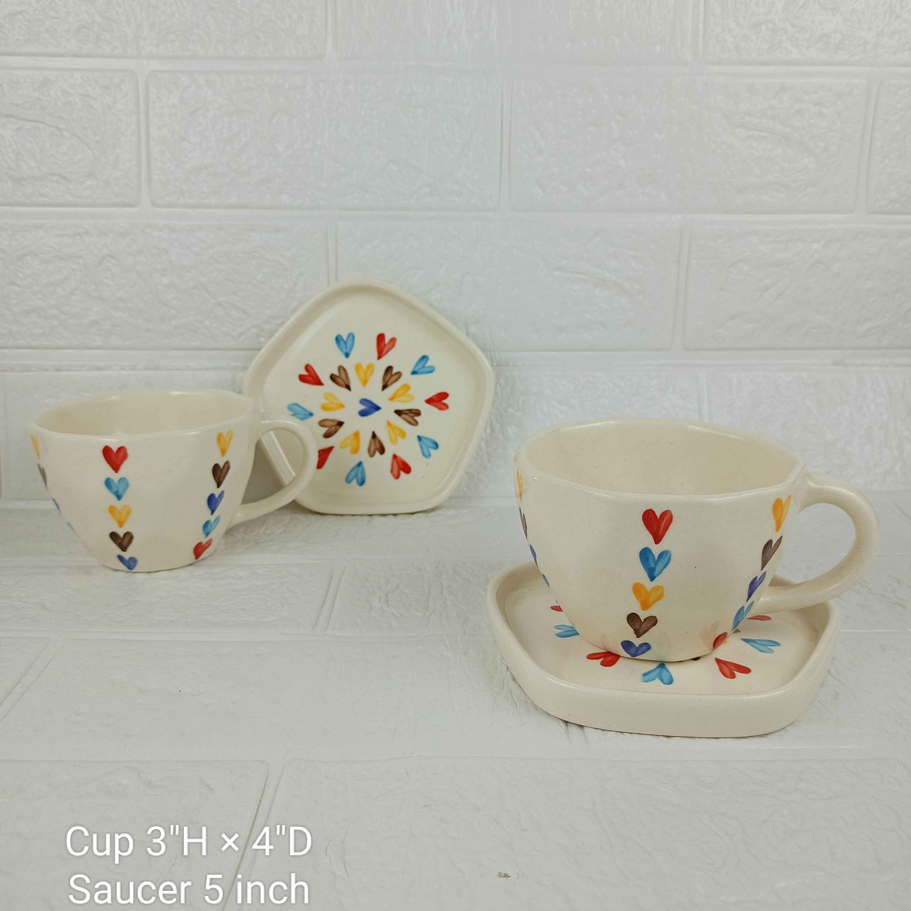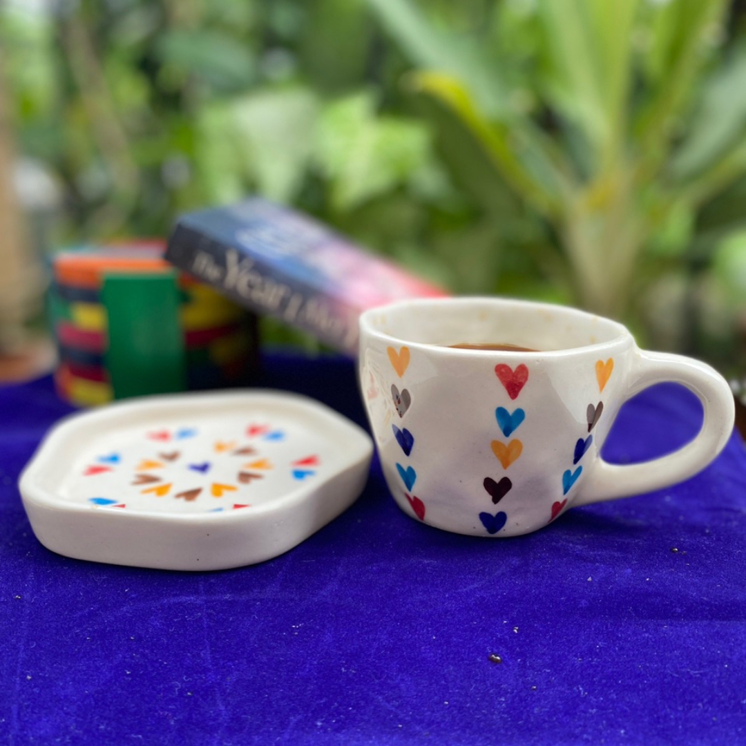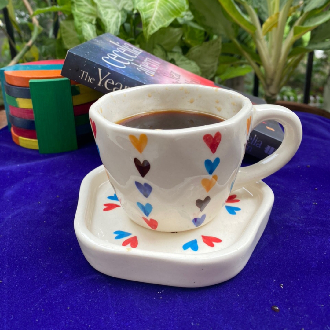 3. Sip in style with our Ceramics Multi Heart Cup and Saucer set. Perfect for coffee and tea, this charming design adds a touch of elegance to your table.
