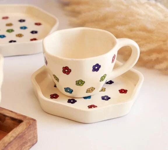 3. Brighten your table with our Ceramics Multi Flower Cup and Saucer. Unique floral designs make every sip special. Find your favorite set now!