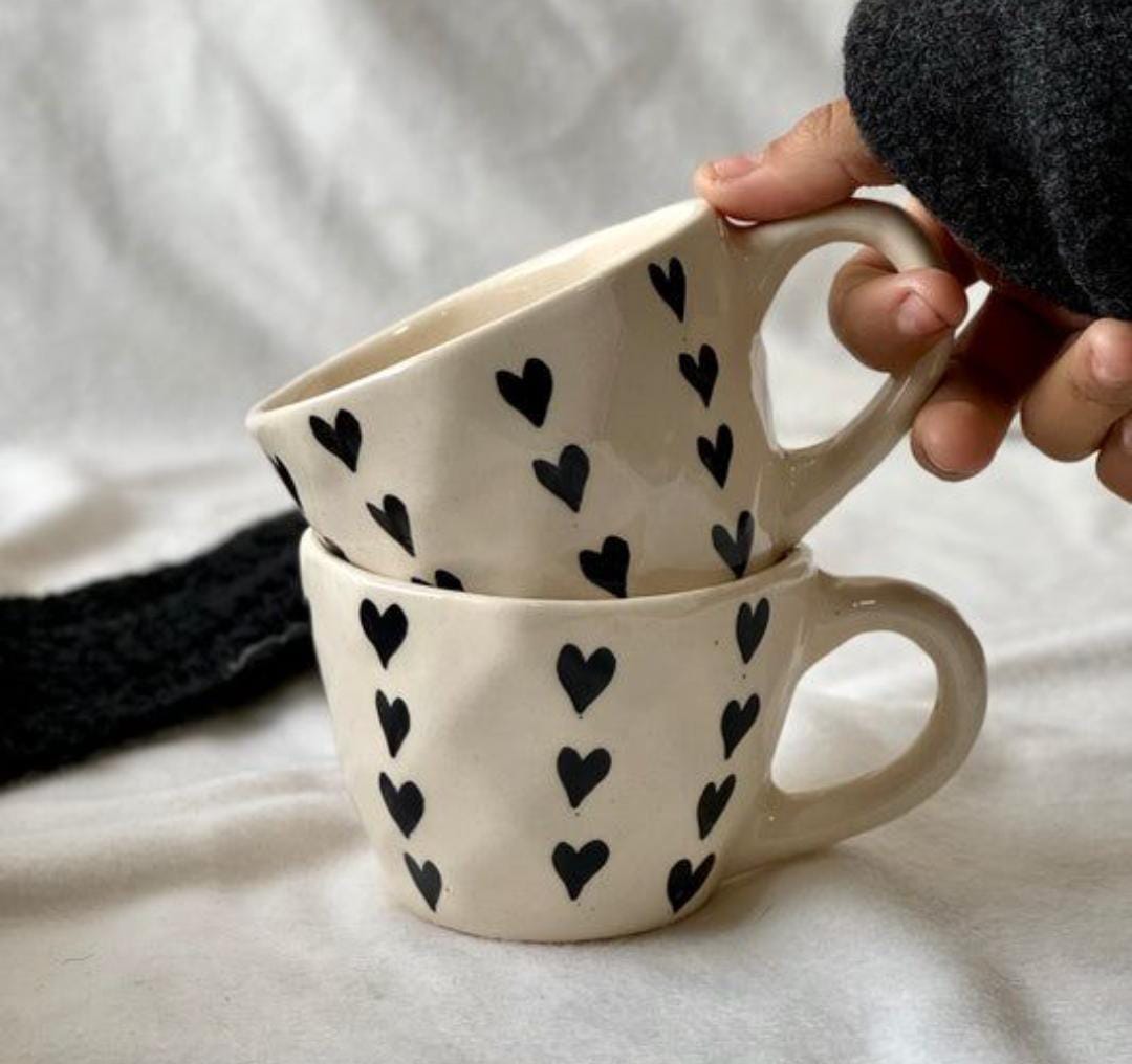 3. Unveil the beauty of the Black Heart Diamond Cup, a unique ceramic creation that blends artistry and practicality. Perfect for gifting or personal use!