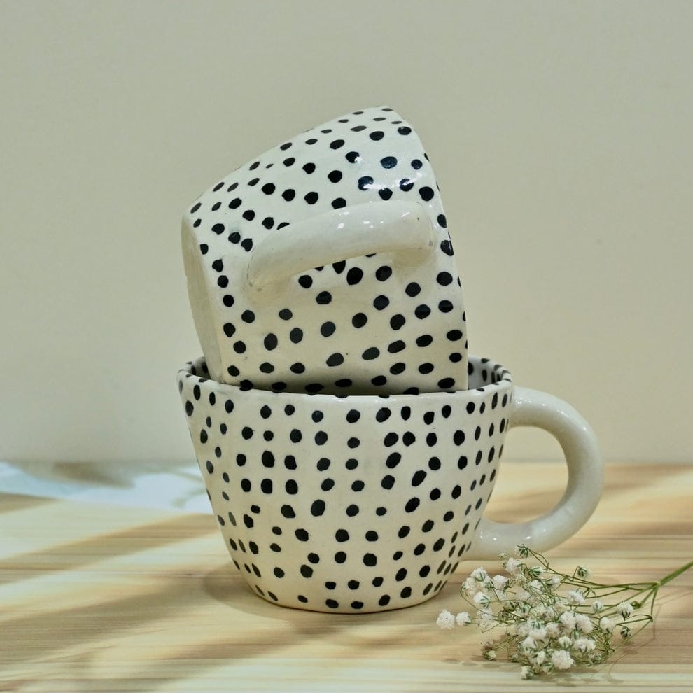2. Sip in style with the Black Dott Diamond Cup. This unique ceramic piece combines modern design with timeless elegance, making every drink a special experience.