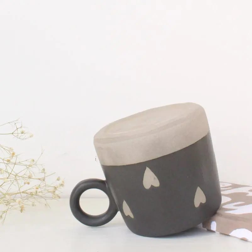 2. Elevate your drinkware with Abiya Ceramics' black matt glazed heart mug. Handcrafted in Khurja, it’s a unique blend of style and functionality.