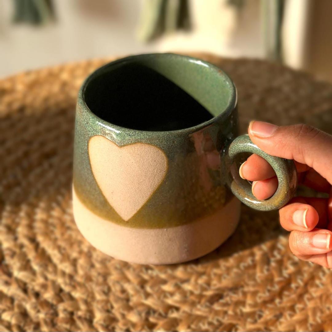 5. Find the perfect blend of style and functionality with Abiya Ceramics' green big heart mugs. Handcrafted in Khurja, they’re a must-have for every home!