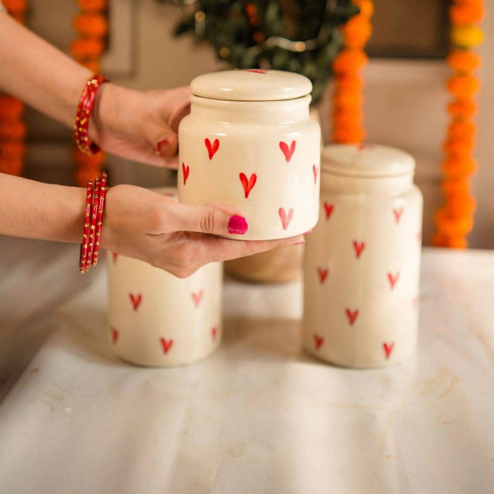 2. Elevate your space with our small red heart jar from Khurja ceramics. A delightful blend of artistry and functionality, perfect for any occasion.