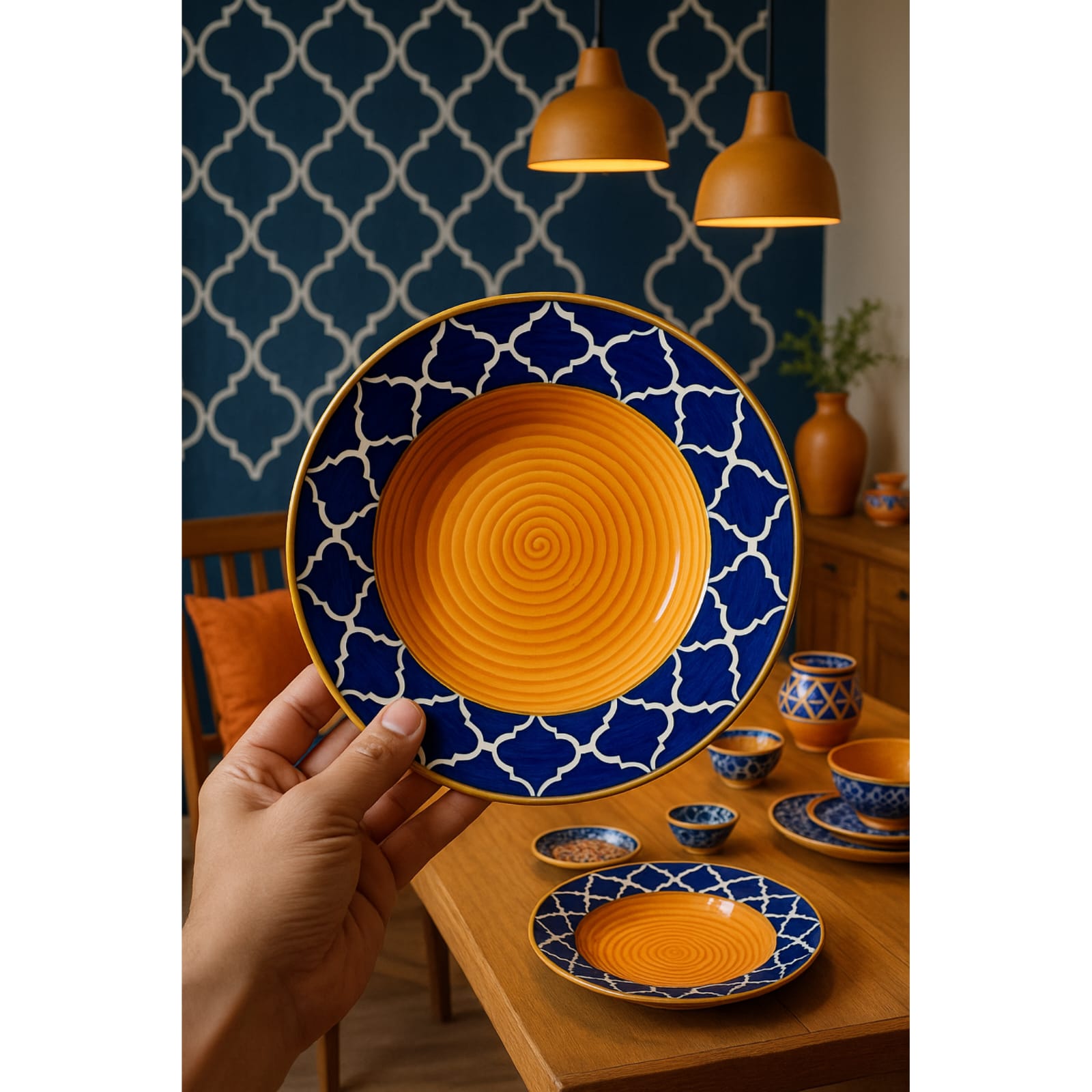 4. Add a touch of artistry to your dining with our Khurja ceramics Big Yellow Chidi painting pasta plate. Perfect for pasta lovers and art enthusiasts alike!
