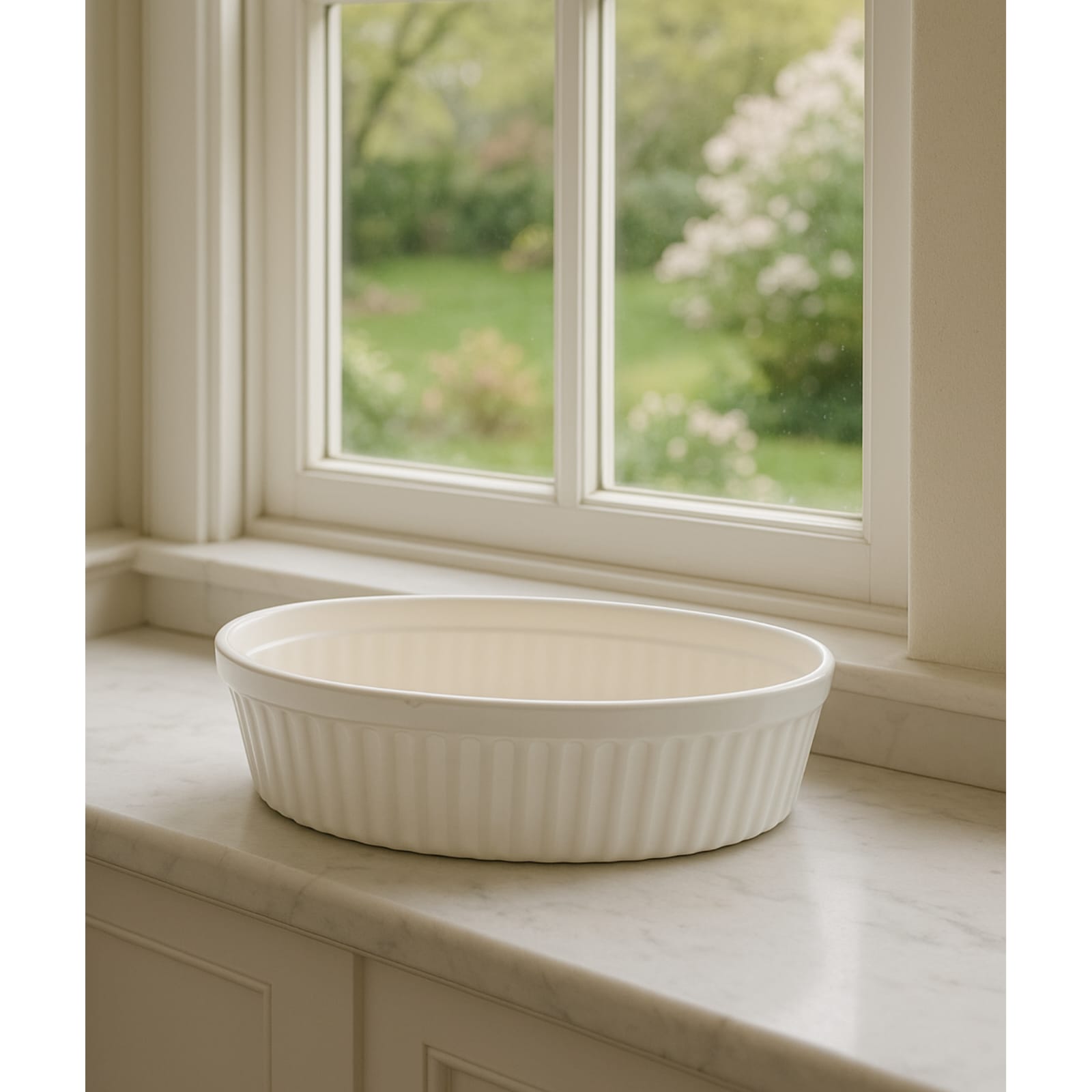4. Transform your space with the Khurja Ceramic Bonsai XL White Lining Oval Tray Planter. Ideal for showcasing your favorite plants in style.