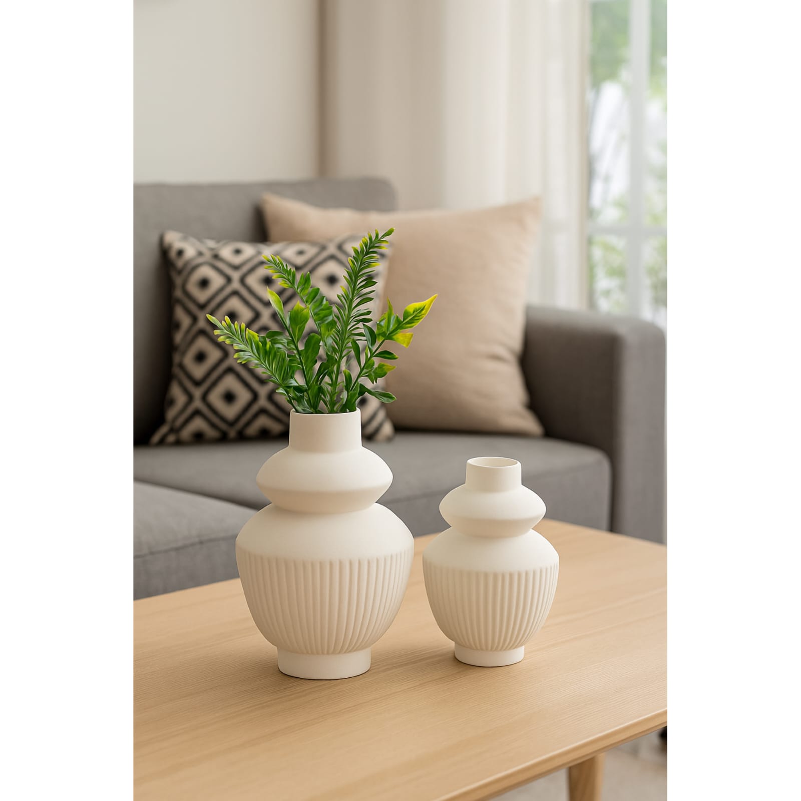 4. Transform your living space with our Khurja Ceramics New Line Dholak Vase Set! This stylish 2-piece set boasts a chic advanced matt finish.